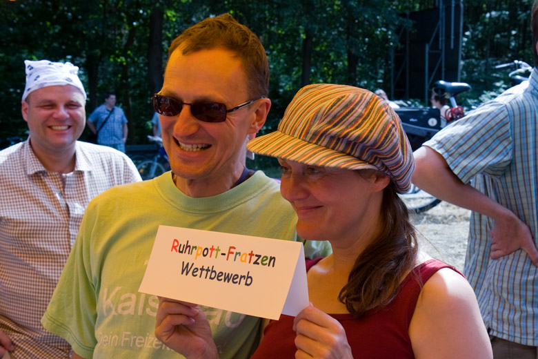 Das Wallbaumrudel war dabei: km 14,4, Block 88, Tisch 6 - hier nahmen wir und einige unsere Freunde Platz an der längsten Tafel der Welt. Bei kühlen Getränken, und Nudel- und Kartoffelsalat ließen wir unseren Programmpunkt "Ruhrpott-Fratzen-Wettbewerb" unter die Tafel fallen und hatten einfach nur einen total tollen Tag bei besten Wetter und heißen