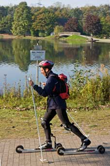 In jüngeren Jahren sah man sie ein paar mal die Woche auf Gummisohlen laufend ein, zwei und manchmal auch drei Stunden lang das Gelände erkunden. Die Krönung des ganzen war dann ein Lauf von ca. 42,2 km ... vernünftige Mushers nehmen dafür einen Schlitten und ihr Rudel. Nun ist sie ein bisschen vernünftiger geworden - das Rudel wird zwar immer noch nicht mitgenommen, aber dafür nimmt sie jetzt Schlitten auf Rädern!