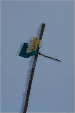 Jotunheimen zurück zum Hüttendorf führte. Die folgende Nacht war mit -21°C die kälteste und der Morgen unseres letzten Skitags begann mit -15°C und Nebel - beides hielt sich bis in den späten Vormittag, so dass wir zunächst keine Lust auf eine Langlauftour verspürten. Am späten Vormittag machten wir uns aber auf die Fluß-Loipe: Schön und kalt ... und leider die letzte Tour unseres Urlaubs! Die letzte Nacht wurde noch kälter und unsere Einpackaktion gestaltete sich dementsprechend unkomfortabel. Zum Glück und zu Haralds Verwunderung sprang der Diesel trotz -25°C an und wir machten uns auf den langen Weg nach Hause. |